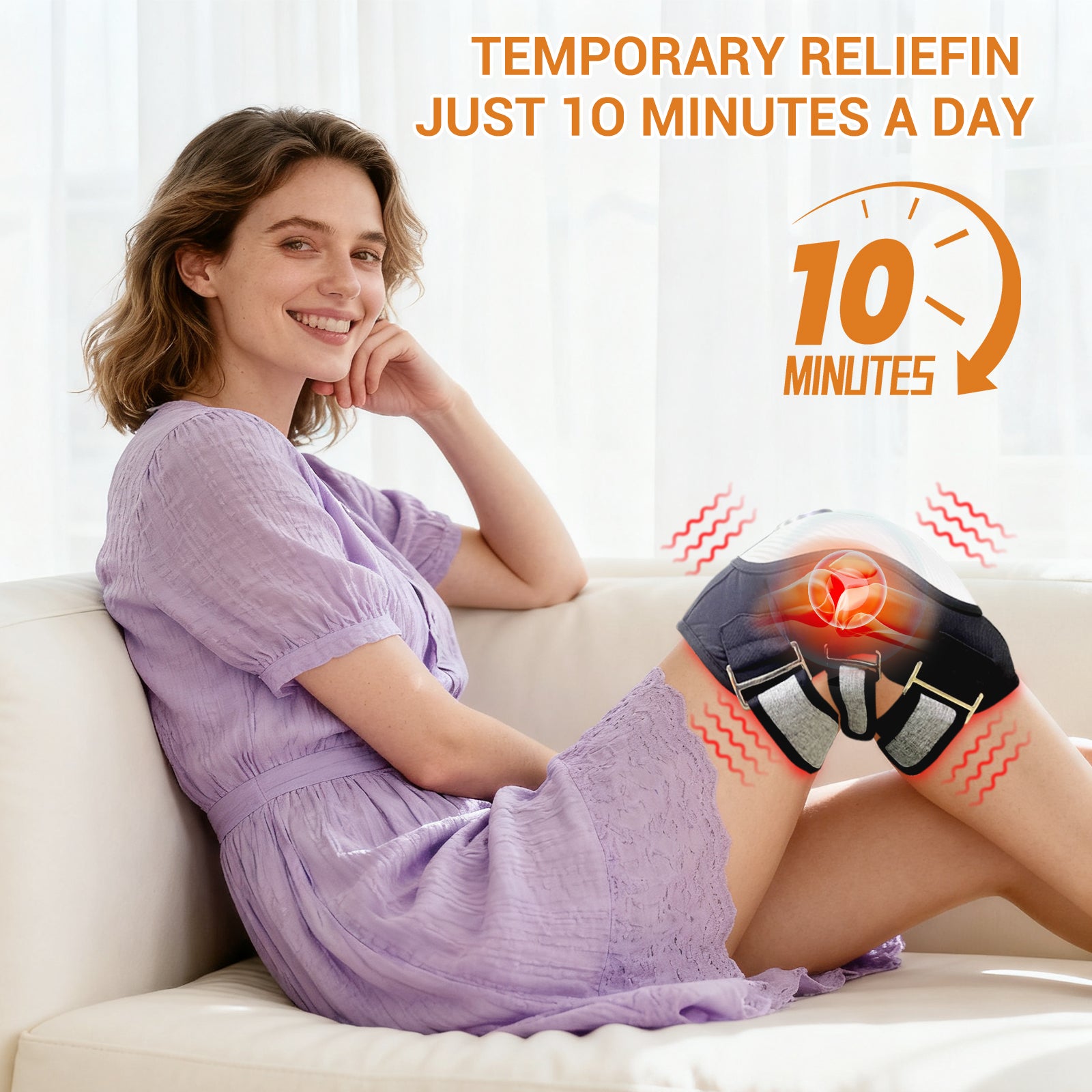 [4-in-1 Massage Therapy: Vibration + Heat + Compression] This all-in-one knee massager combines soothing heat, customizable vibration, and ergonomic compression to relieve knee discomfort, stiffness, and soreness. It's also suitable for the shoulders and elbows, offering versatile pain relief for multiple joints..